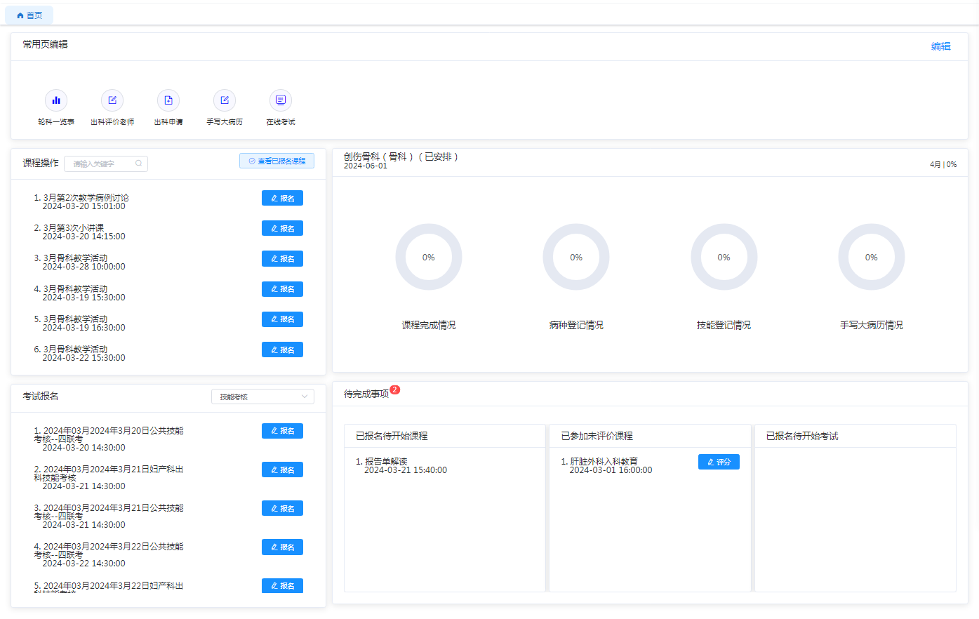 自主研發(fā)了由住院醫(yī)師規(guī)培系統(tǒng)、規(guī)范化培訓(xùn)考核題庫、以及臨床技能培訓(xùn)三個(gè)大模塊組成的住院醫(yī)師規(guī)范化管理系統(tǒng),在系統(tǒng)標(biāo)準(zhǔn)配置的框架下,能夠針對(duì)不同醫(yī)院的個(gè)性化需求進(jìn)行細(xì)化調(diào)整和功能拓展
